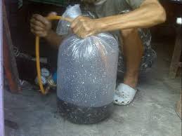menggunakan air bersih kira-kira tiap kantong 5-10 liter air. Dimana nantinya